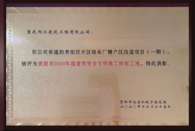 贵阳美的璟悦风华项目被评为贵阳市2020年建筑安全文明施工样板工地